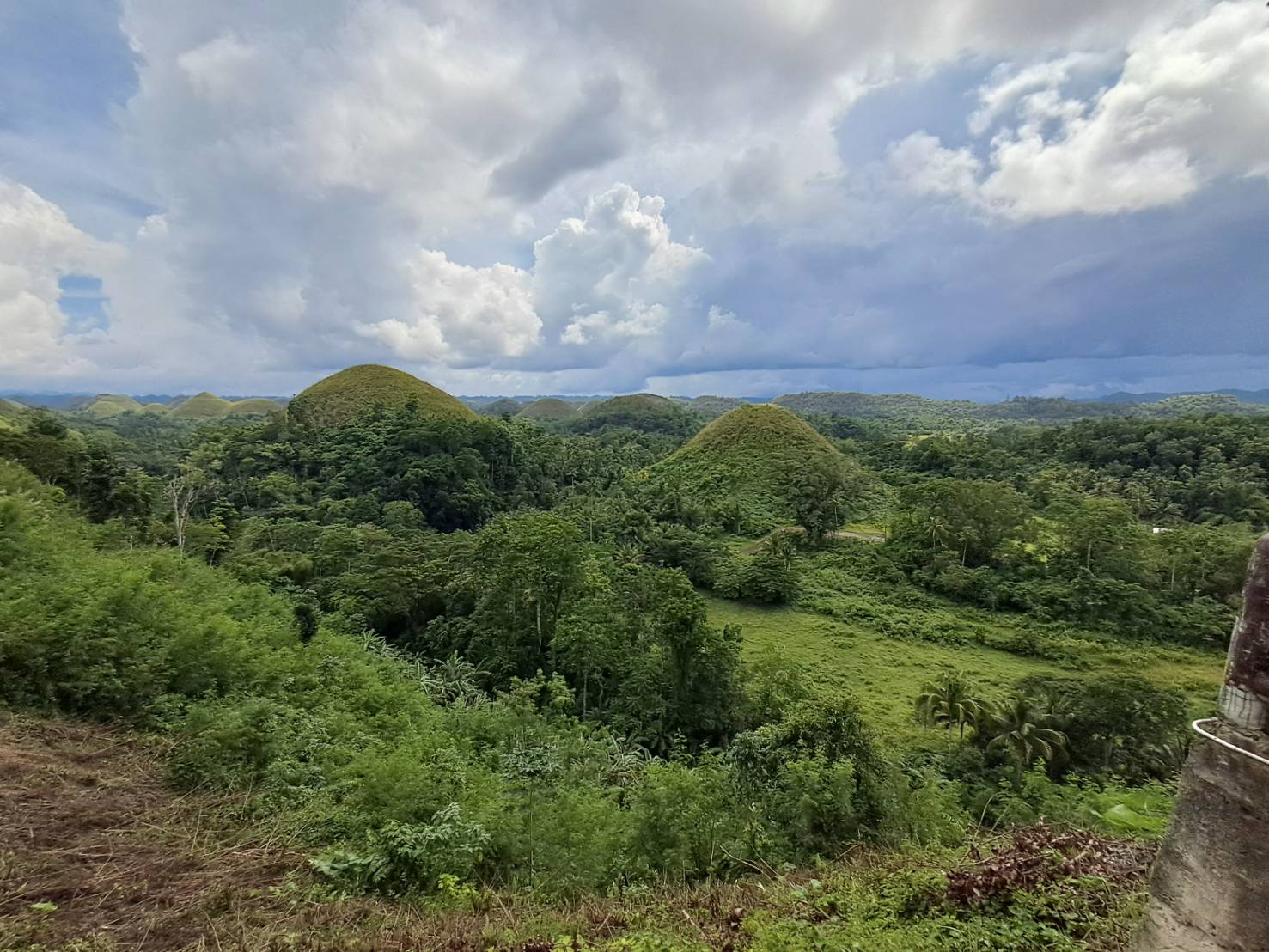 最後の観光地チョコレートヒルズに到着! 高さ30mほどの円錐形の丘が1,000個近く連なる光景はまさに絶景です!